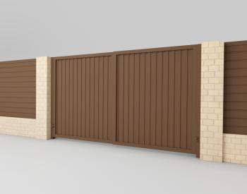 Для распашных ворот, помимо сэндвич-панелей, есть возможность изготовить заполнение из любых материалов: металлического штакетника, сетки, деревянных досок и других.